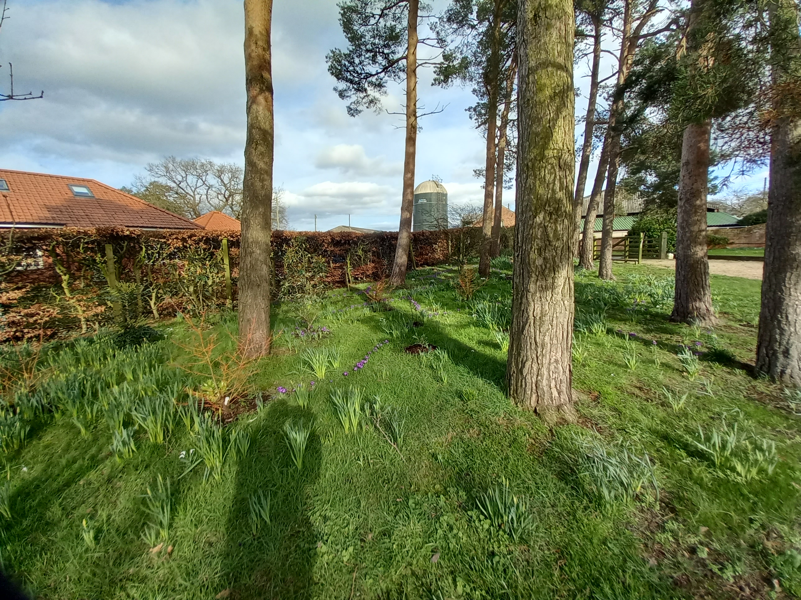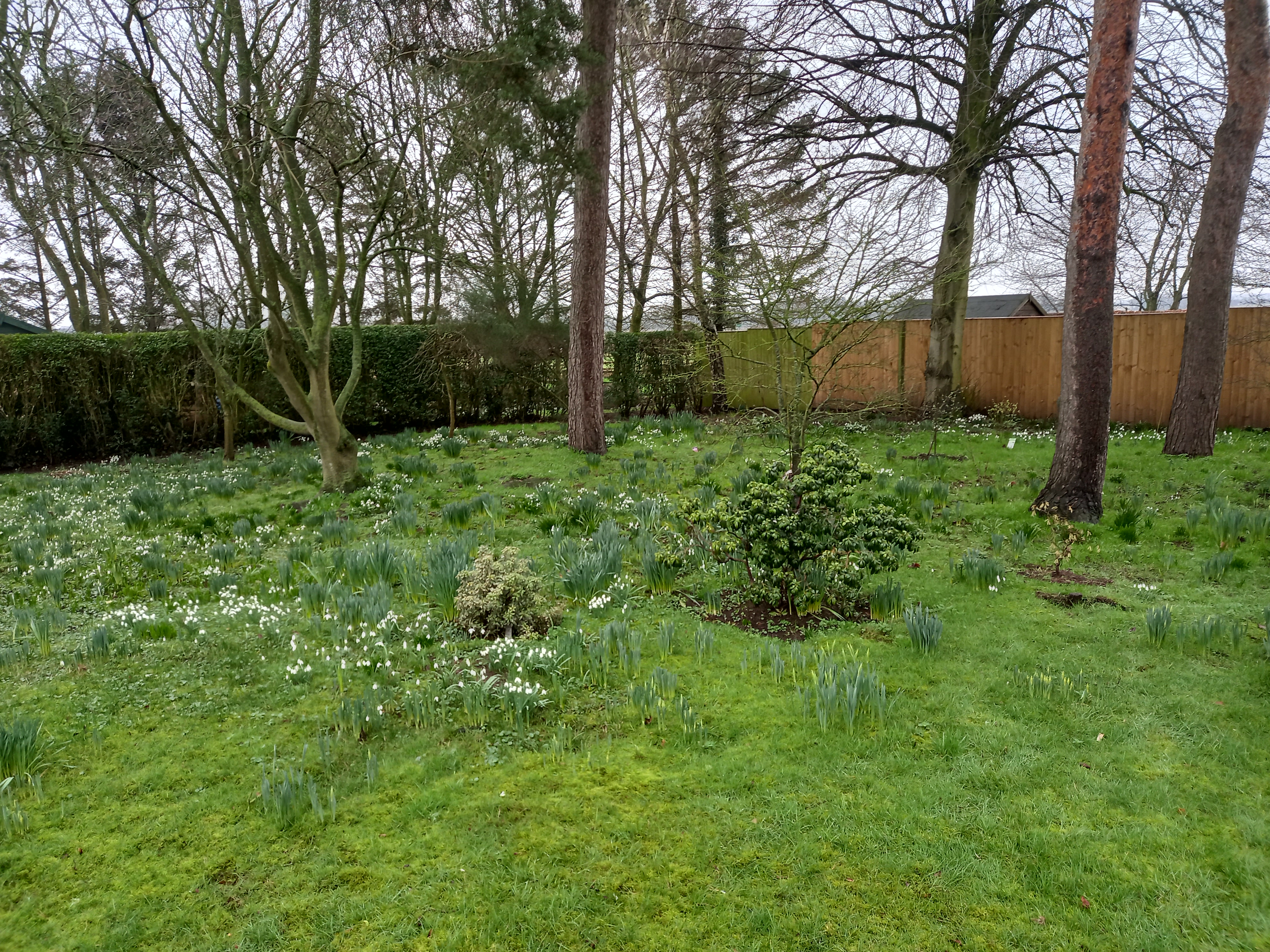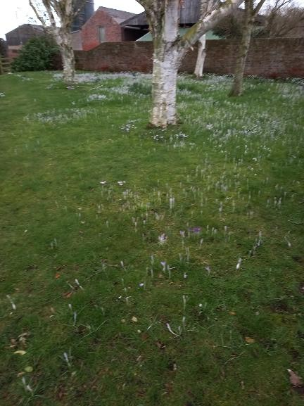 Crocus lawn - which is covered with naturalising crocus followed by daffodils, and then cut down to lawn